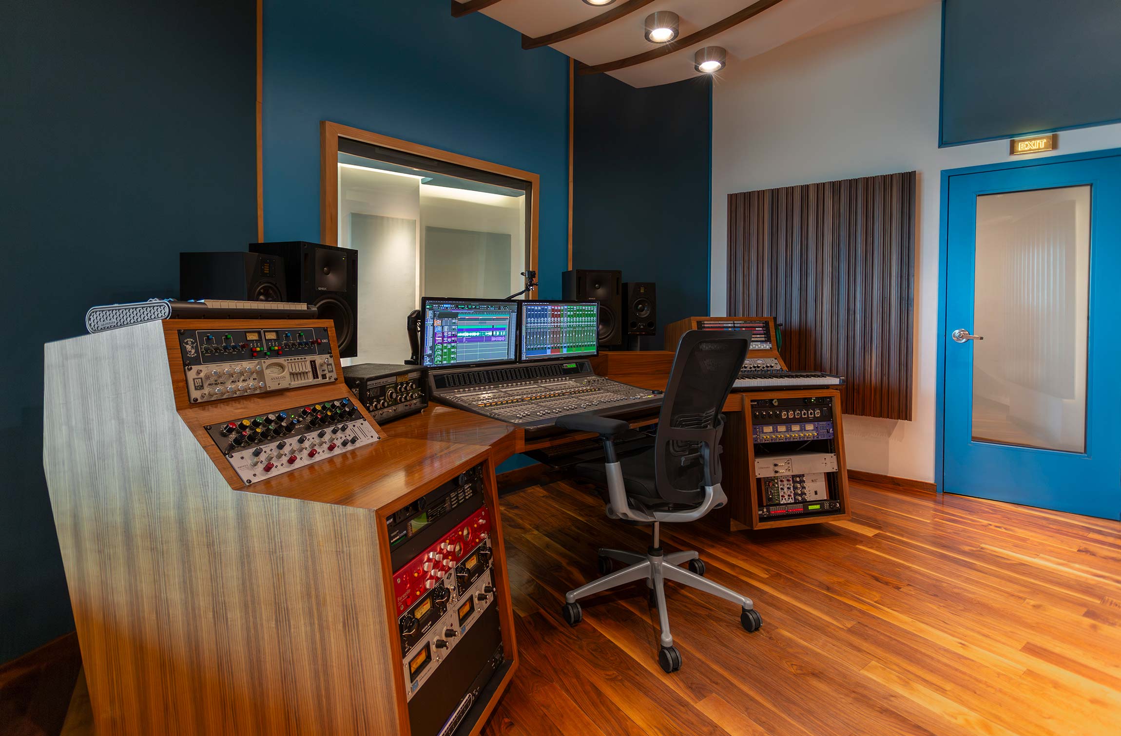 ESTUDiO B ESTÁ DiSEÑADO PARA CAPTURAR EL DETALLE, LA iNTiMiDAD Y LA PERFECCiÓN TÉCNiCA QUE REQUiEREN LAS GRABACiONES VOCALES E iNSTRUMENTOS SOLiSTAS.